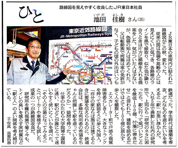 仕事のかたわら大学院博士課程に通い、駅のどこが誰にとって迷いやすく使いにくいかを調べた。「その人の立場になってみよう」とベビーカーや車椅子も試した。成果の一つが路線図改良だ。