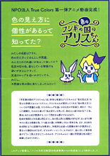 「色覚」についてのパンフレットと「色覚補助レンズ」&「体験レンズ」を持参します。